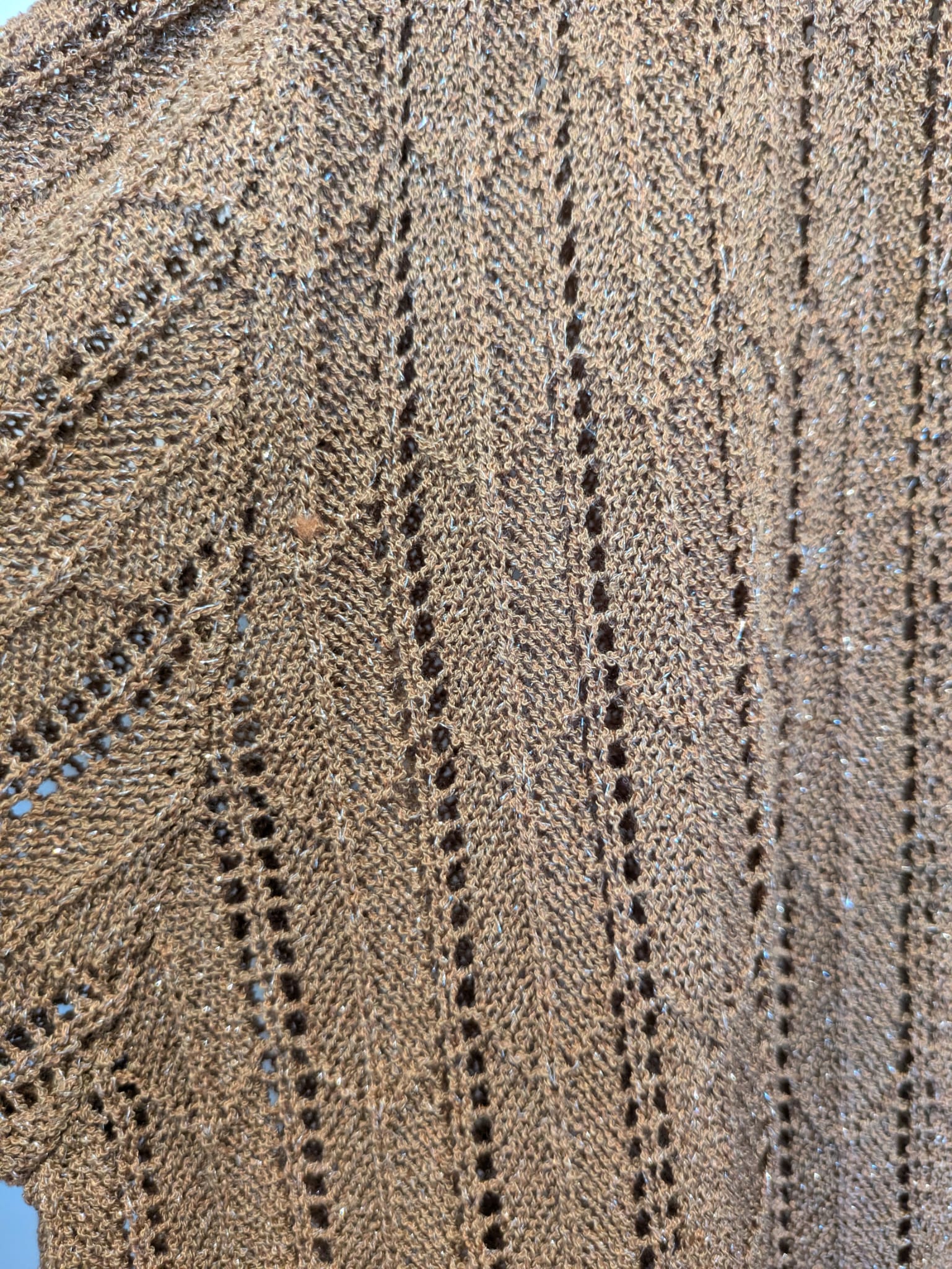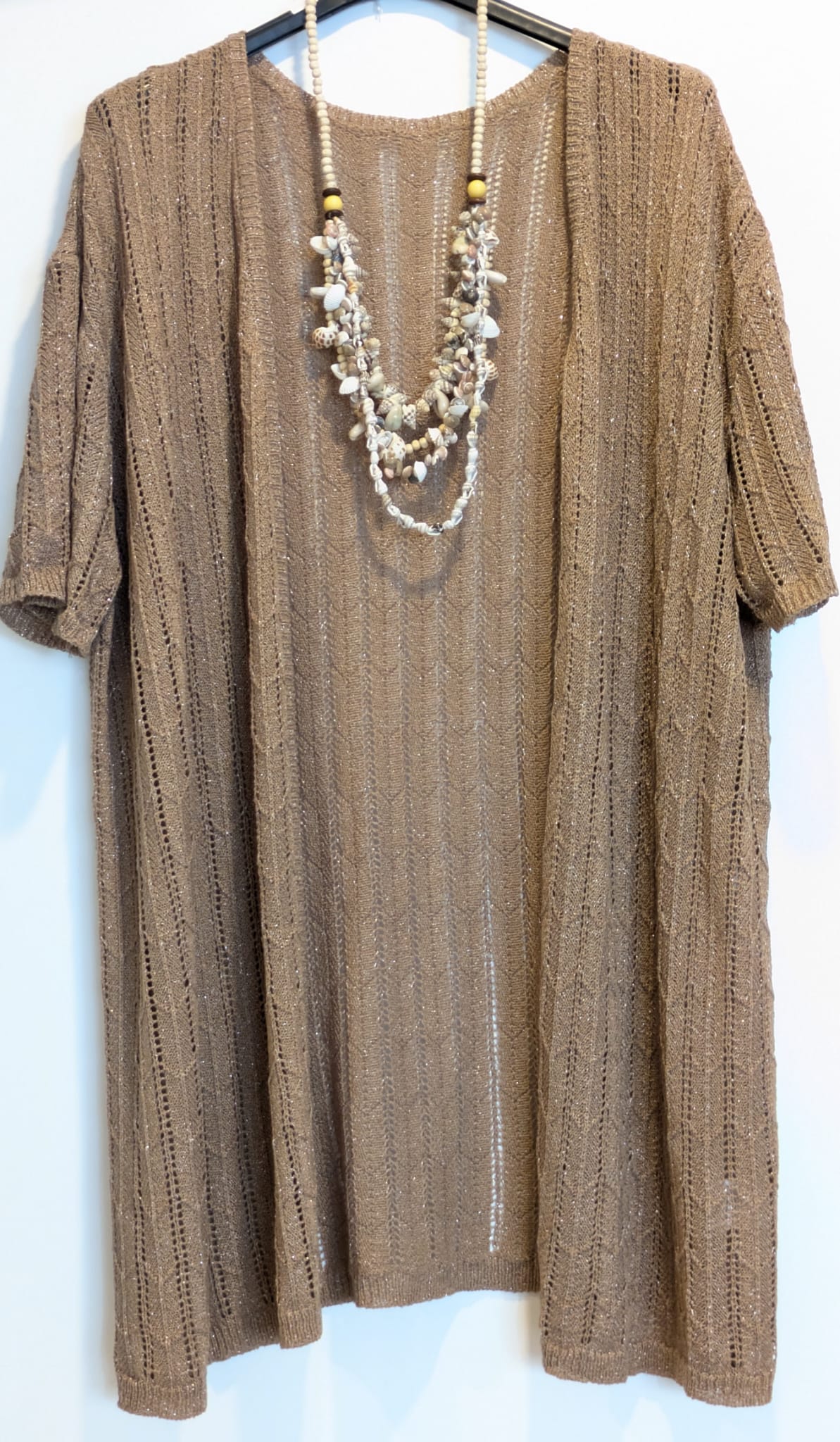 Chaqueta calada de manga corta, con detalle hilo plateado.