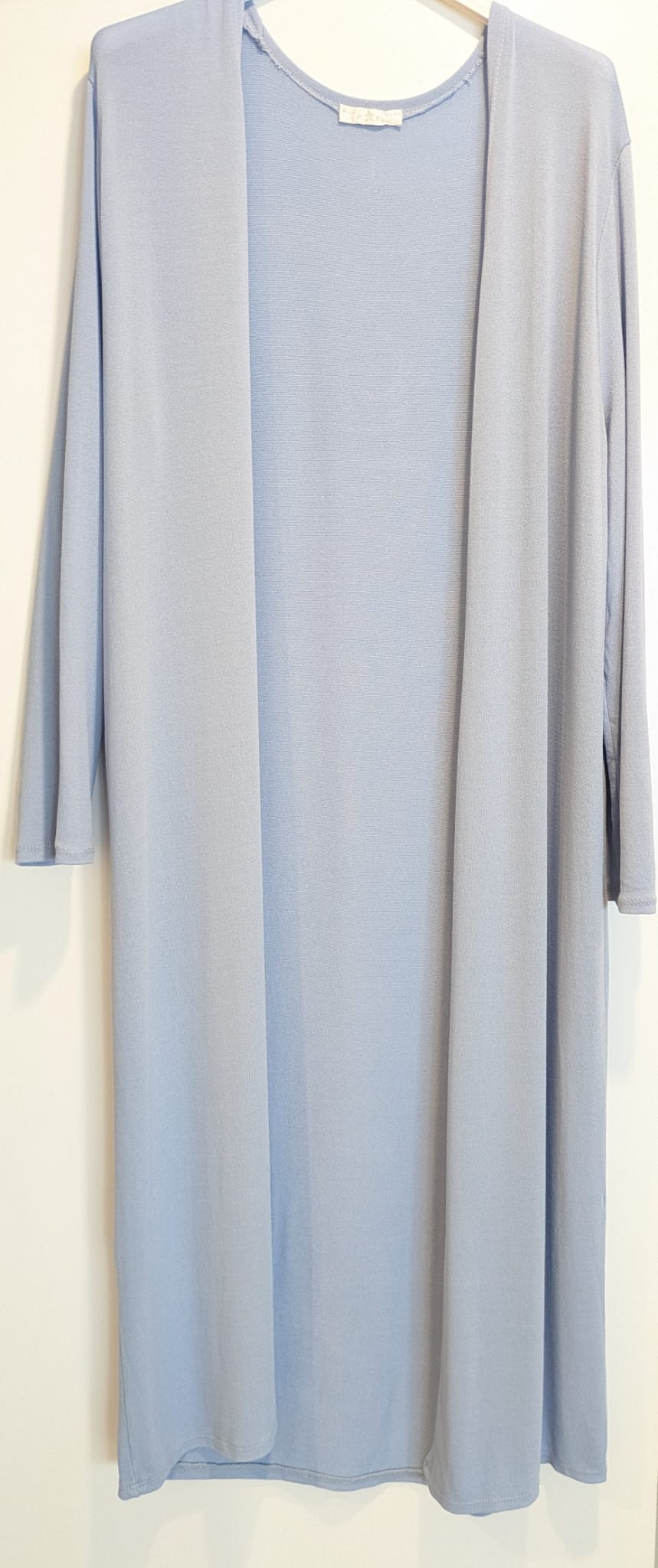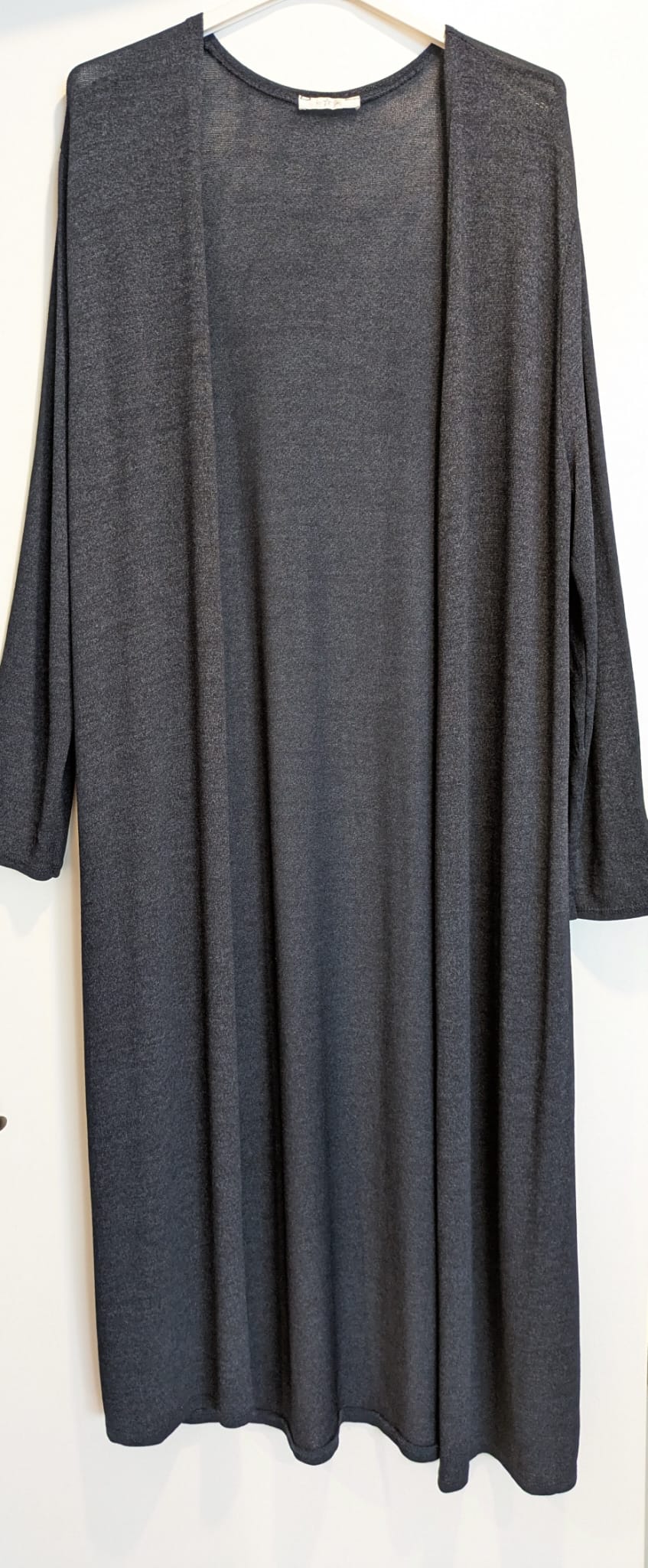 Chaqueta «guardapolvo» larga, con mucha caída de punto fino.