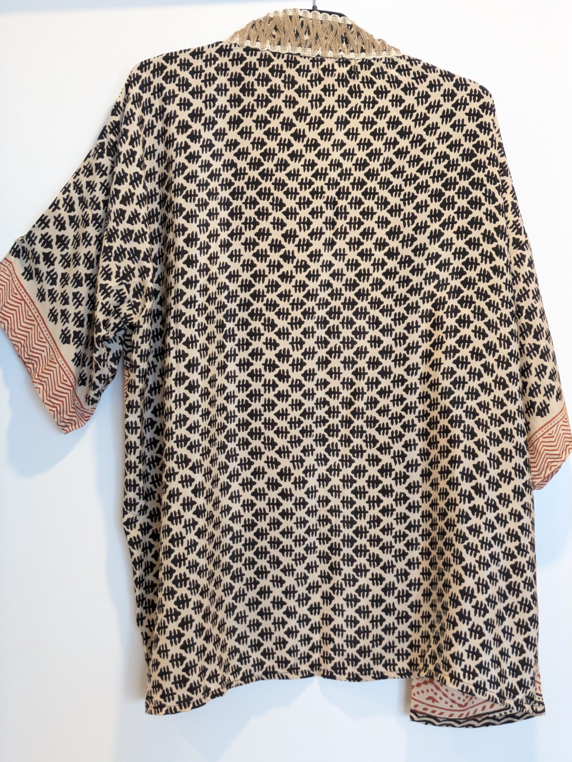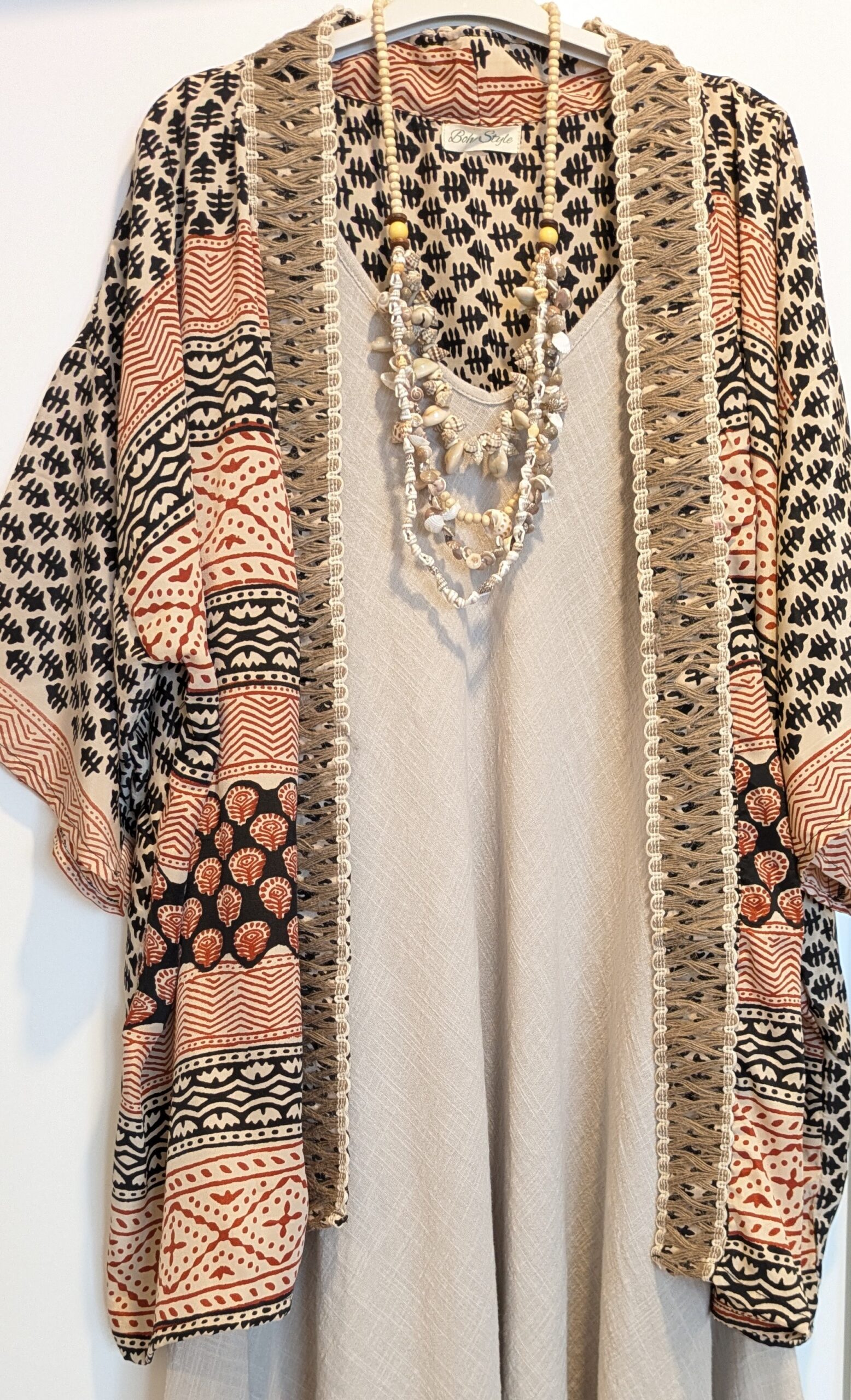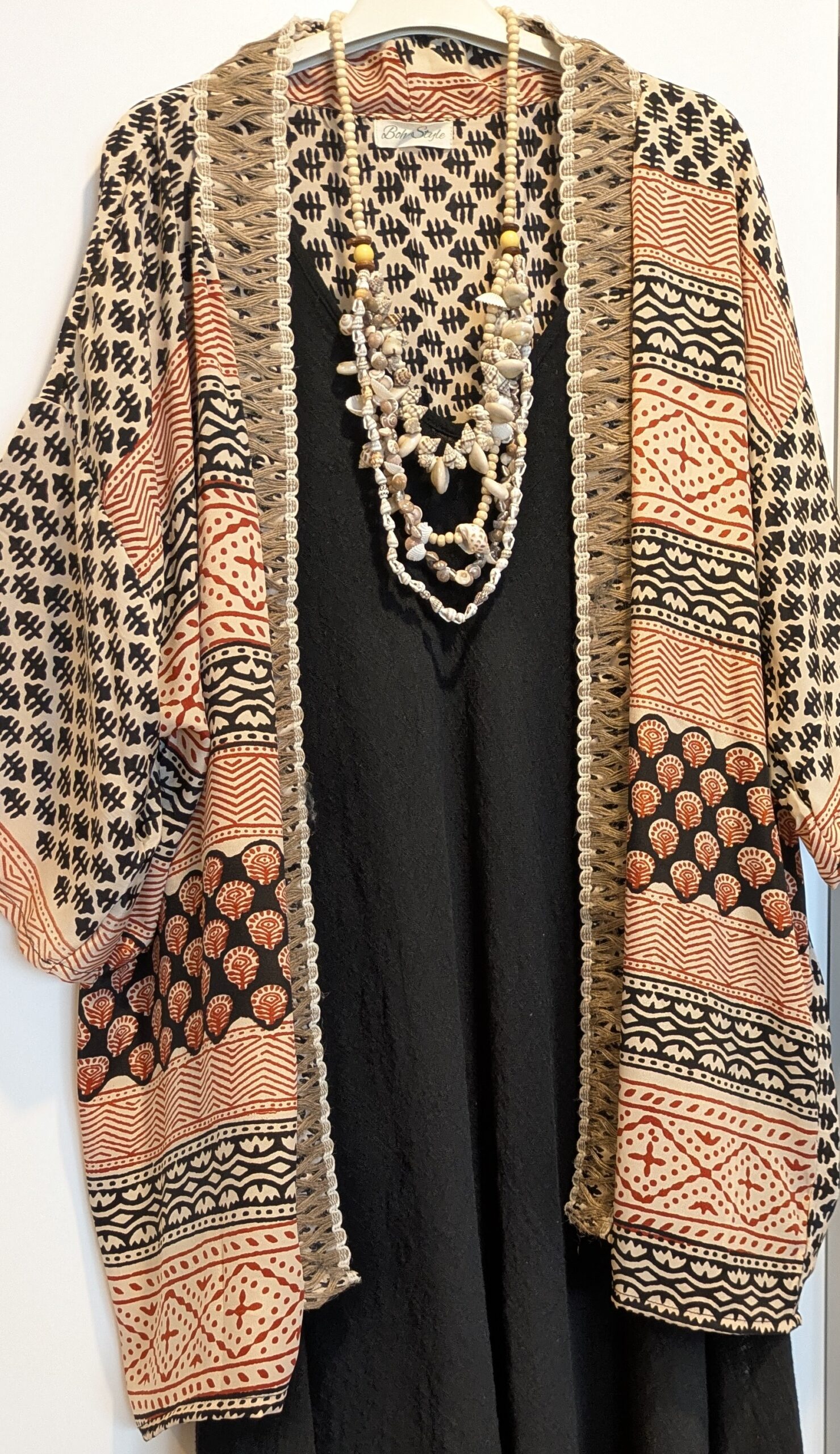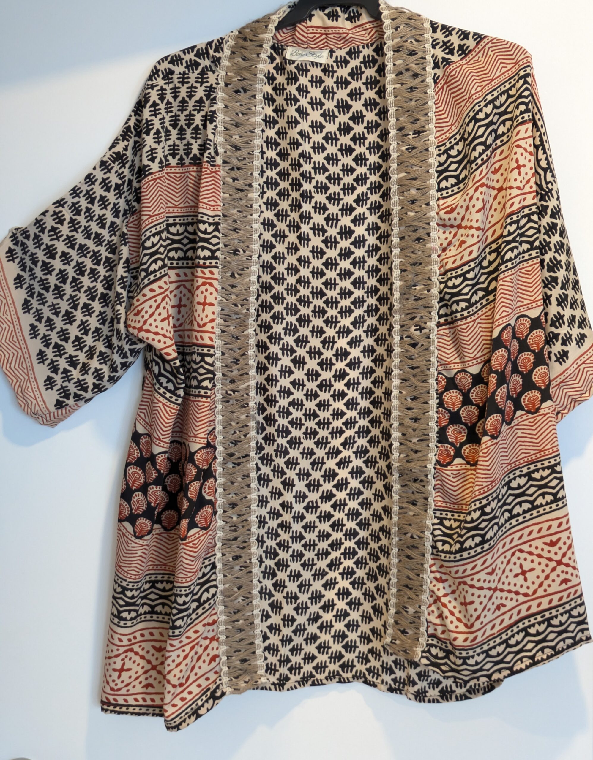 Kimono estampado colores vivos, ideal para combinar con vestidos lisos. Muy suave al tacto.