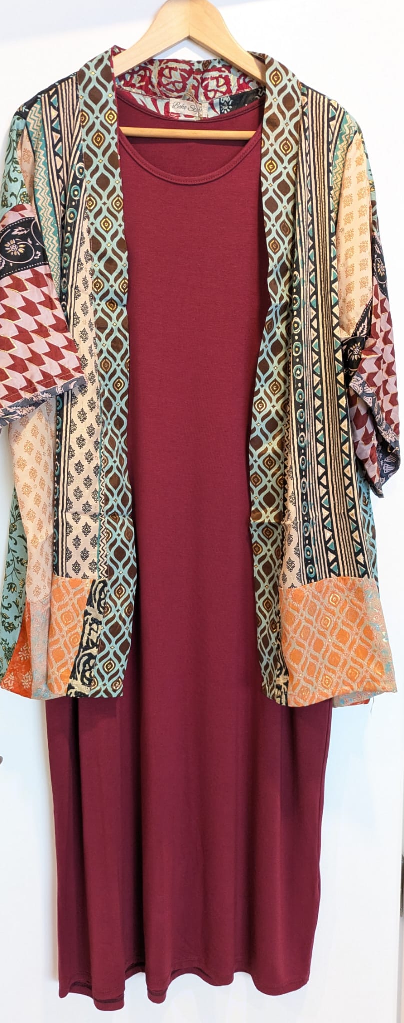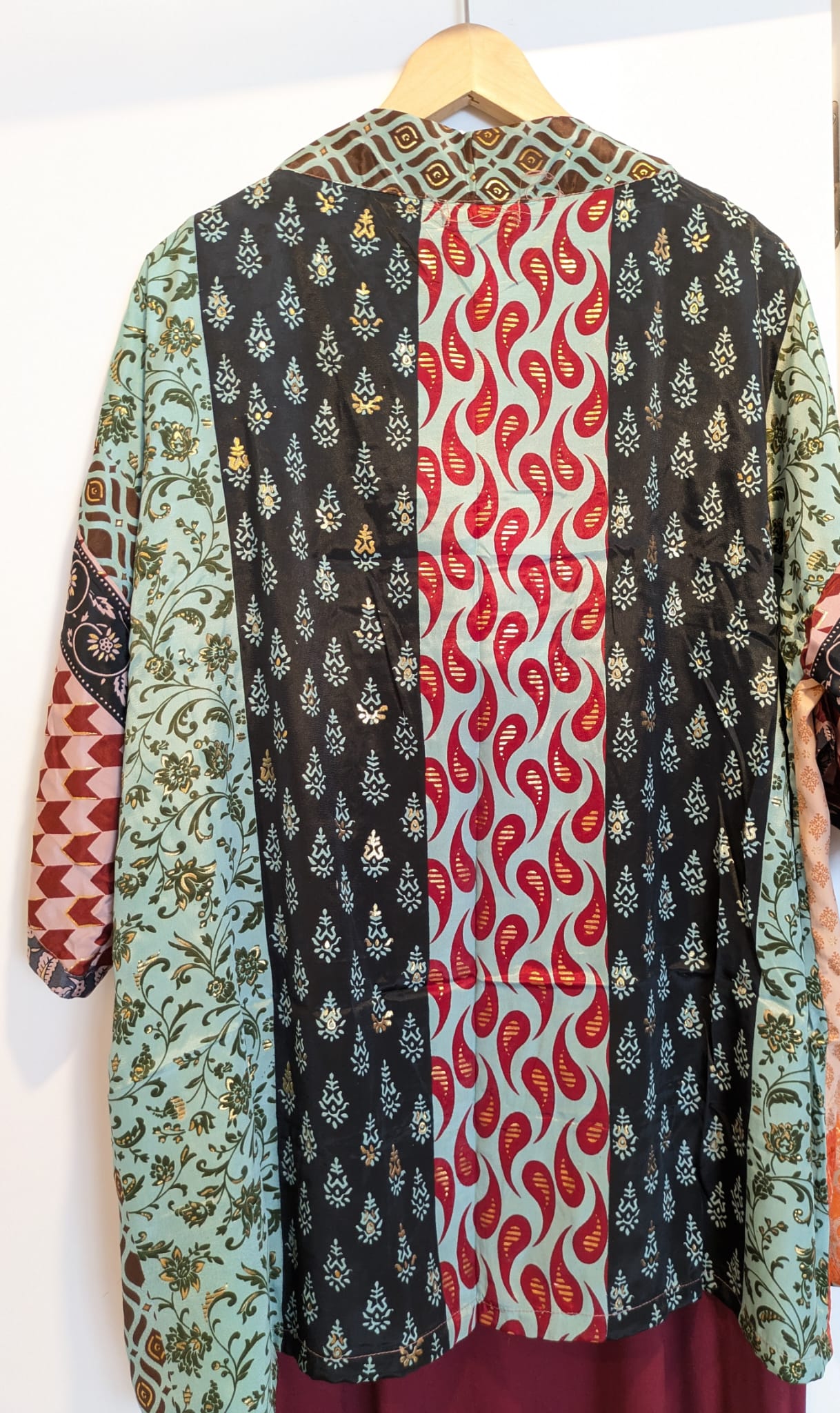 Kimono estampado colores vivos, ideal para combinar con vestidos lisos. Muy suave al tacto.